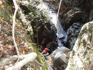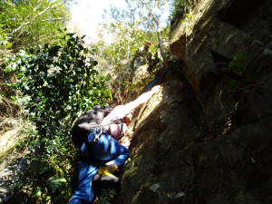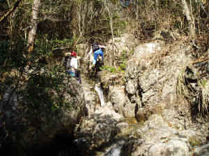 幾つかの滝をアイゼンを着けたまま登り、ここでアイゼンを脱ぐ。